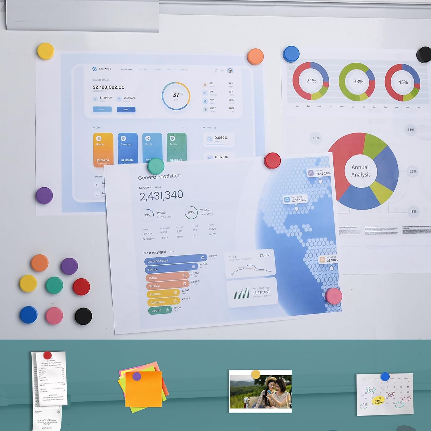 Kağıt tutturmak için tasarlanmış güçlü neodyum mıknatıs.